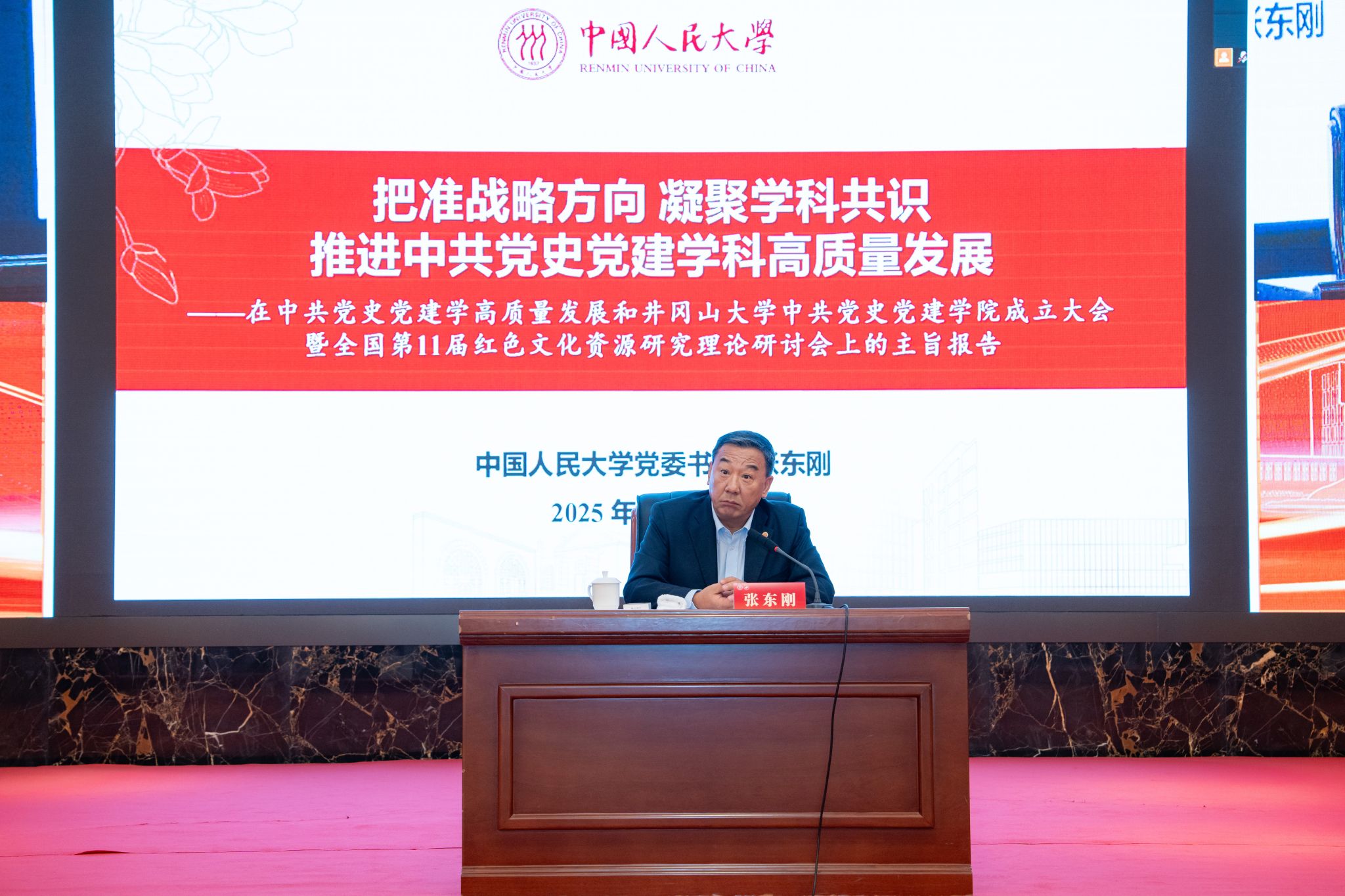 中国人民大学党委书记张东刚在井冈山大学中共党史党建学院成立大会上作主旨报告10月20日,在井冈山大学中共党史党建学院成立大会召开之际,中国人民大学党委书记张东刚应邀作题为《把准战略方向 凝聚学科共识 推进中共党史党建学科高质量发展》的主旨报告,校党委书记罗旭彪主持报告会。张东刚聚焦如何推进中共党史党建学科高质量发展的主题,从学科定位、学科知识体系建构、学科服务支撑新时代党的建设、提升学科的国际影响力等四个方面进行深入阐释。...