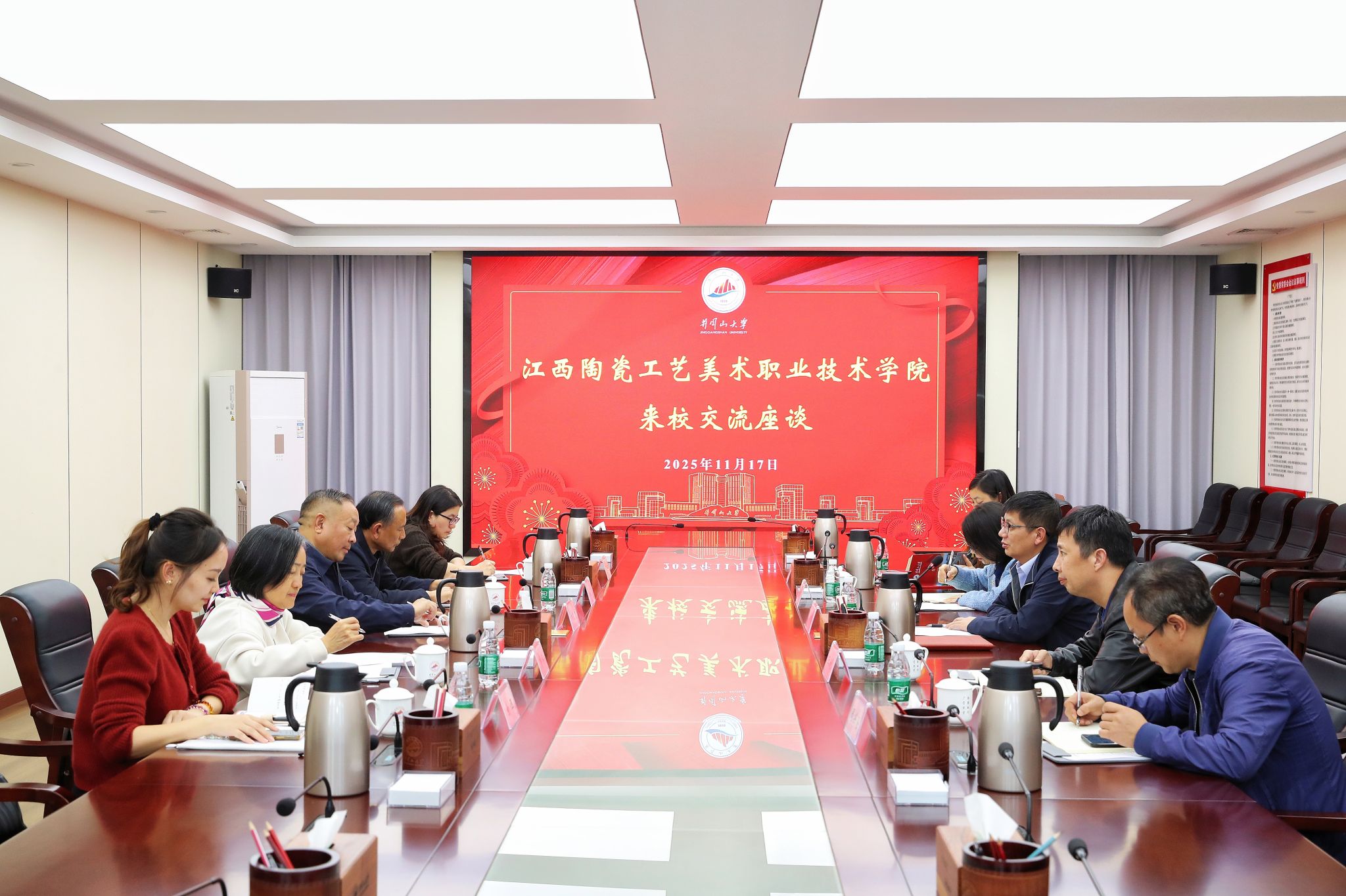 11月17日下午,江西陶瓷工艺美术职业技术学院党委书记方文龙一行来校调研交流。校党委书记罗旭彪出席并主持会议,两校相关职能部门负责人参加会议。罗旭彪对方文龙一行来校调研交流表示热烈欢迎,并简要介绍了我校的发展历程、办学特色及近年来在学科建设、人才培养、科研创新等方面取得的成果。他指出,江西陶瓷工艺美术职业技术学院在传统工艺传承与创新领域具有独特优势,双方在职业教育高质量发展背景下,有着广阔的合作空间。他强调,...