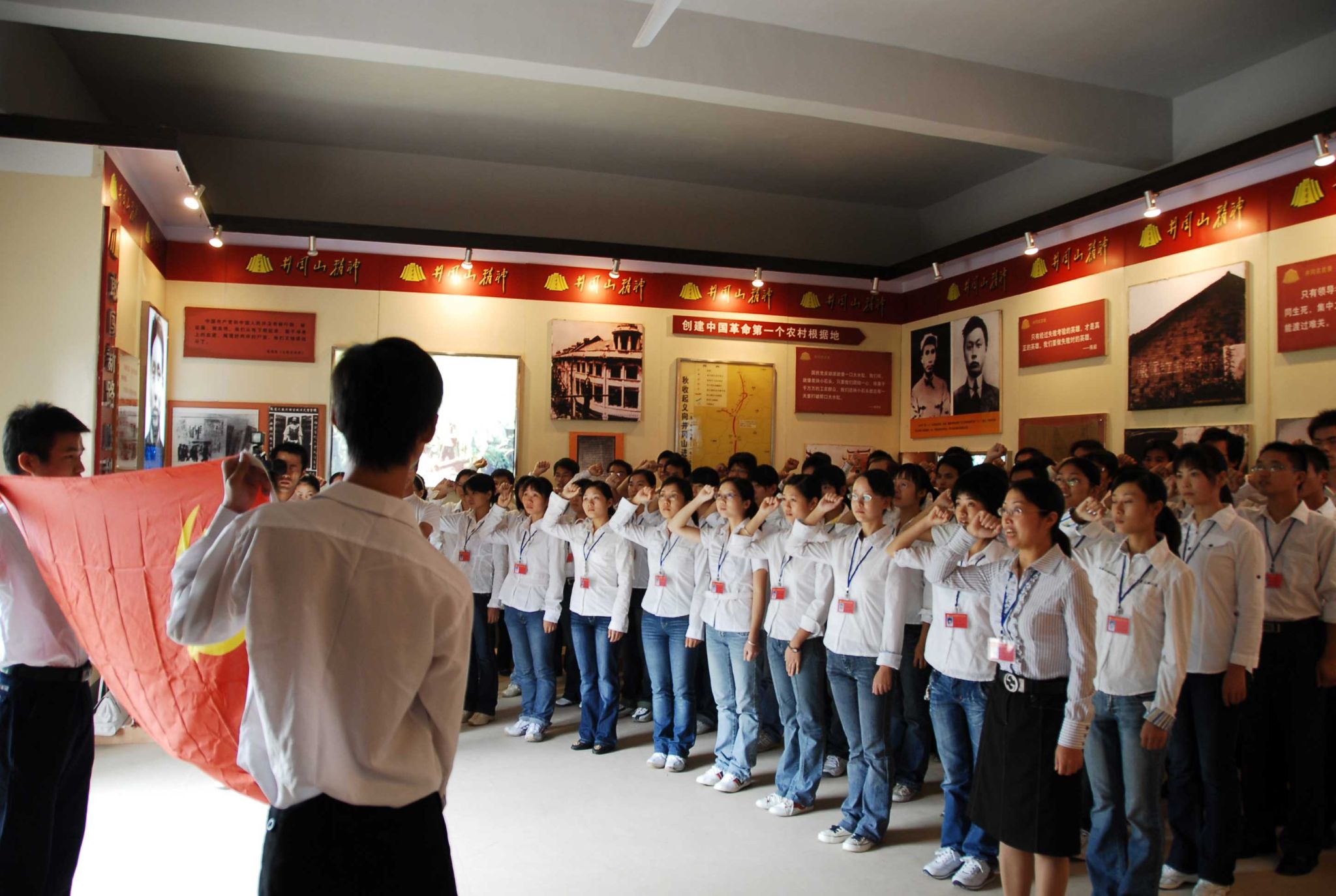 并参观井冈山精神大型展览 10月11日下午,政法学院50多名学生党员,在校新落成的井冈山精神展览馆重温入党誓词,并参观井冈山精神大型展览,迎接党的十七大胜利召开和井冈山革命根据地创建80周年。党委组织部、党委宣...