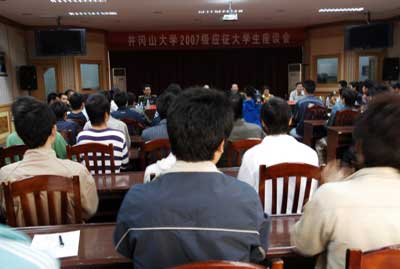 吉安军分区参谋长程小云,校领导万继抗、金桂英出席 10月31日上午,学校召开2007级应征大学生座谈会,市委常委、吉安军分区司令员张复平,市征兵领导小组副组长、吉安军分区参谋长程小云,校领导万继抗、金桂英,青原...