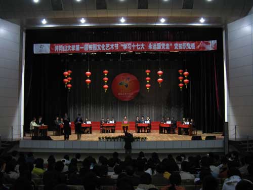 12月12日晚,由校党委组织部、宣传部和校团委共同举办的“学习十七大,永远跟党走”党知识竞赛决赛在学生会堂举行,校党委副书记、纪委书记金桂英出席并和千余名同学一起观看了决赛。 本次党知识竞赛分为笔试和现场抢...