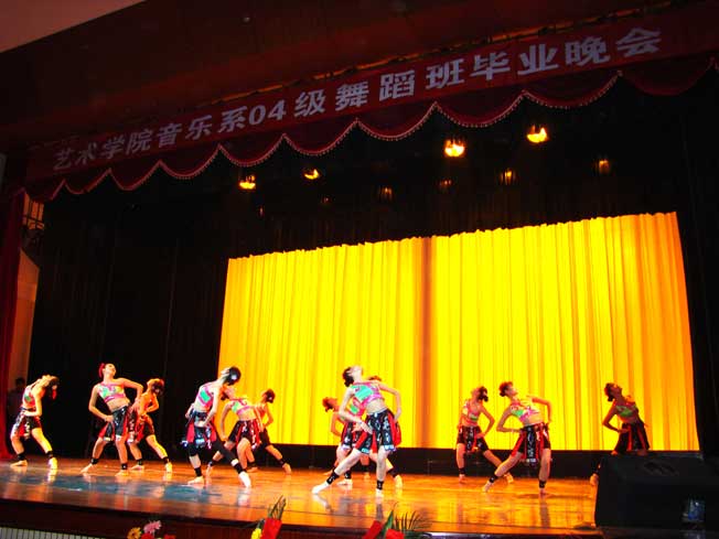 12月28日晚,艺术学院04级舞蹈班在音乐厅举办毕业晚会,校领导桂国庆、罗学渭出席,艺术学院领导陪同欣赏了整场晚会。 毕业晚会由群舞、双人舞、爵士舞、独舞、独唱等节目组成,以扎实的专业基本功、精湛的表演艺术成...