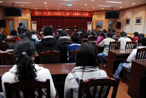 1月7日晚,学校举行了《井冈山的红色传说》2007年采风活动总结大会,校长张泰城出席并发表热情洋溢的讲话,副校长罗学渭主持。党委宣传部、井冈山精神研究所、团委负责人以及参与采风活动的全体师生参加会议。 张泰城...