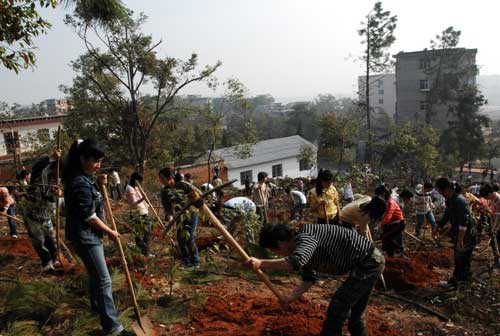 3月12日是植树节。当天上午,数理学院几百名大学生挥汗如雨,在校园内山坡上挖了460多个树洞,再次掀起了今年学校植树造林的热潮。 从3月11日开始,学校发动全体学生在校内100多亩山坡上陆续开展大规模的义务植树造林...