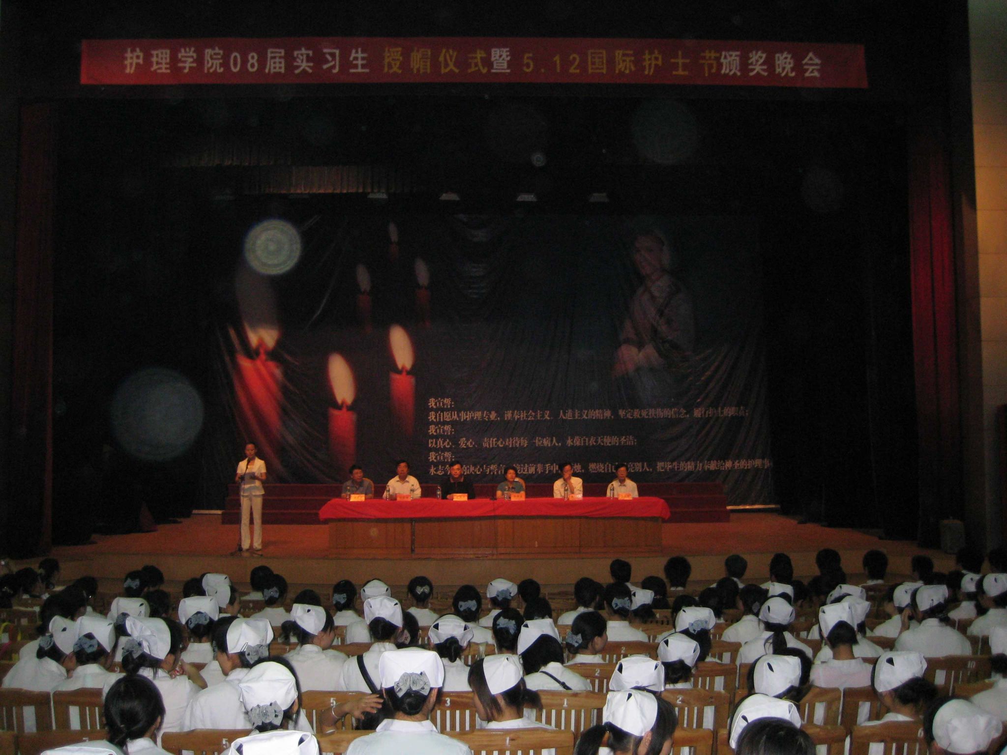 为了激发广大护理学生增强责任感、使命感,继承和发扬南丁格尔精神;感受头戴圣洁燕尾帽,将宽广博大的爱心奉献给每一位患者的神圣与自豪。5月12日上午,学院在医学校区礼堂举行2008年护理专业实习生授帽仪式暨“5.1...