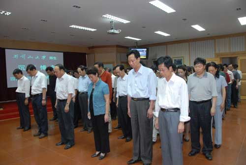 5月19日14时28分,我校师生自发举行仪式,深切哀悼在四川汶川大地震中遇难的数万同胞,表达了对在地震中不幸遇难的同胞的无限哀思。 14时许,在校的领导万继抗、金桂英、桂国庆、康泰、罗学渭、王伴青和机关干部一起...