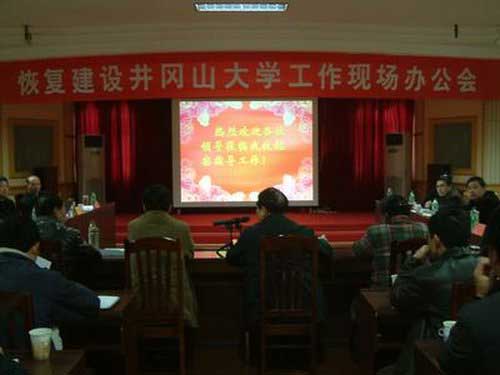 省教育厅专家来校就恢复建设井冈山大学的工作进行指导 大会会场 12月9日至10日,省教育厅副厅长洪三国率省教育厅专家咨询组一行8人来我校,就恢复建设井冈山大学工作进行咨询和论证。党委书记万继抗主持了会议,校长...