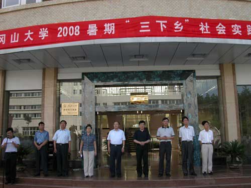 勇担强国使命 共促和谐发展 我校2008年暑期“三下乡”社会实践活动出征仪式举行 7月2日上午,我校2008年大学生志愿者暑期“三下乡”社会实践活动出征仪式在艺术大楼前举行。校党委书记万继抗,校长张泰城,党委副书记...