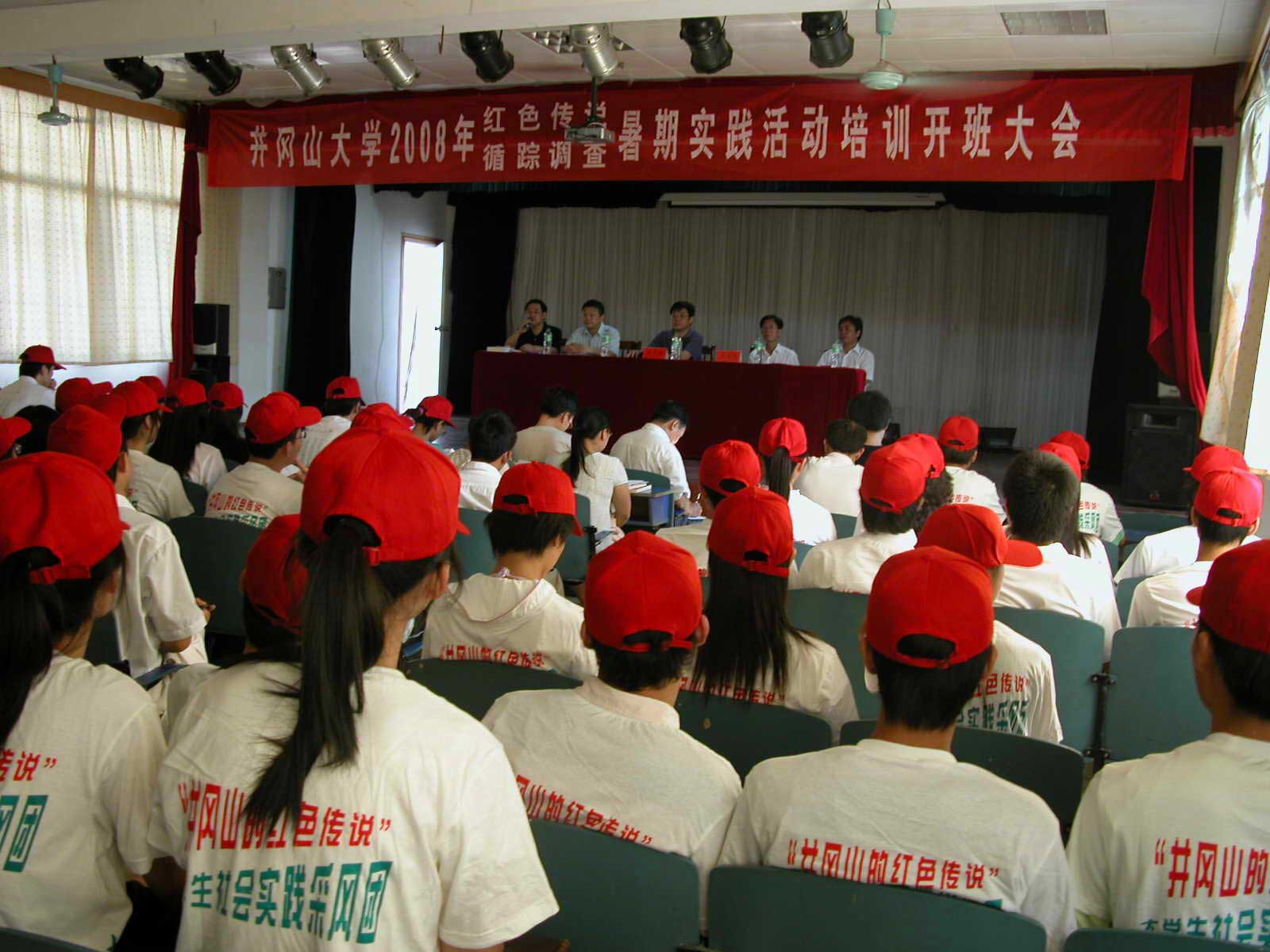 弘扬井冈精神追寻先烈足迹唱响红色旋律 我校2008年“红色传说、循踪调查”暑期实践活动培训开班大会举行 7月5日上午,我校两支省级重点社会实践团“井冈山的红色传说”大学生社会实践采风团和“毛泽东在井冈山斗争时...