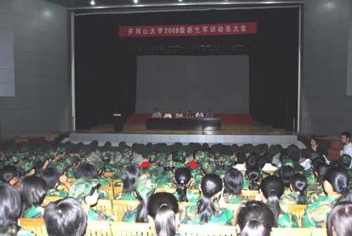 2008级新生开始大学生活第一课 9月6日上午,主校区和医学校区分别举行新生军训动员大会,在校的领导金桂英、郭名根、罗学渭、王伴青分别出席了动员大会,吉安市武警支队参谋长陈梅香出席了主校区动员大会并讲话,吉安...