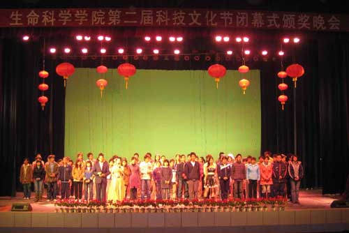 12月6日下午,生命科学学院第二届科技文化节闭幕式颁奖晚会在学生会堂举行。 晚会在青春动感的健美操《校园节拍》中拉开帷幕;流行时尚的街舞《舞步》让在场观众欢呼雀跃,动感的音乐让人跃跃欲试;舞蹈《红河谷情》...