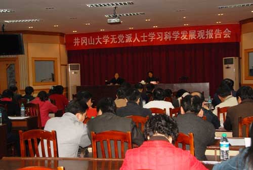 12月11日,学校举行无党派人士学习科学发展观报告会。党委副书记金桂英出席并讲话。党委统战部正县级统战员郭永平主持,政法学院副院长刘浩喜应邀作《认真学习科学发展观,实现高校持续发展》专题辅导报告。学校无党...