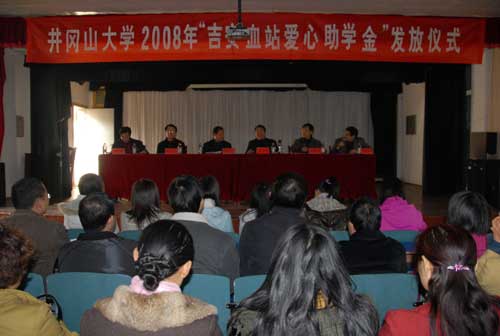 100名学生共获3万元资助 12月31日下午,学校举行2008年吉安中心血站爱心助学金发放仪式,副校长王伴青出席,吉安市卫生局和市中心血站领导出席。王伴青向吉安中心血站颁发了捐资助学证书,赠送了锦旗。学工处长钟风健...