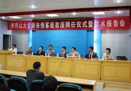 5月27日下午,校长张泰城在医学院为日本昭和大学新谷悟教授颁发了井冈山大学客座教授聘书。副校长曾建平主持仪式。 新谷悟教授为日本昭和大学齿学部口腔颌面外科学主任教授,也是日本国内该专业最年轻的教授。他主要...