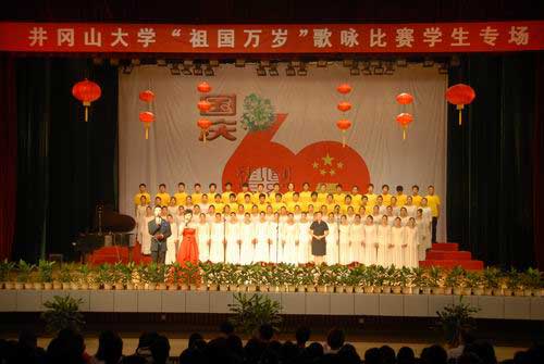 把最美的颂歌献给伟大的祖国 我校“祖国万岁”大学生歌咏晚会成功举行 9月25日晚,在中华人民共和国成立60周年前夕,我校“祖国万岁”歌咏晚会大学生专场隆重举行。全校14个学院各组成一支80名学生的合唱队伍,用嘹亮...