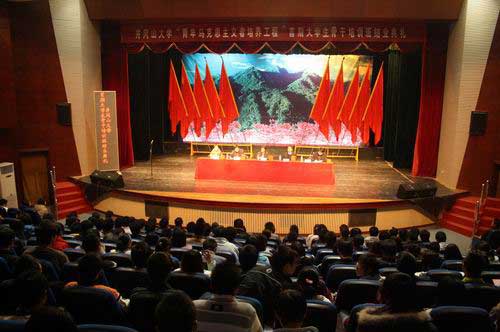 11月24日下午,我校“青年马克思主义者培训工程”首期大学生骨干培训班结业典礼在演奏厅隆重举行。校党委副书记、纪委书记金桂英,校党委委员、宣传部部长肖长春,校团委书记易九桂,团委副书记郭新春、杨芳等出席结...