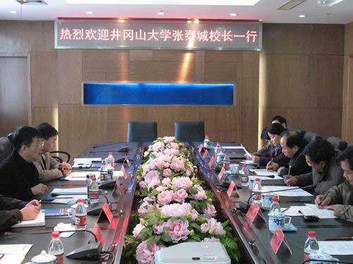 11月23日上午,校长张泰城、副校长曾建平等一行五人,前往南昌大学进行访问。南昌大学党委书记郑克强,党委副书记、副校长程样国等会见了张泰城一行。 张泰城介绍了井冈山大学的基本情况,介绍了学校以井冈山精神办学...