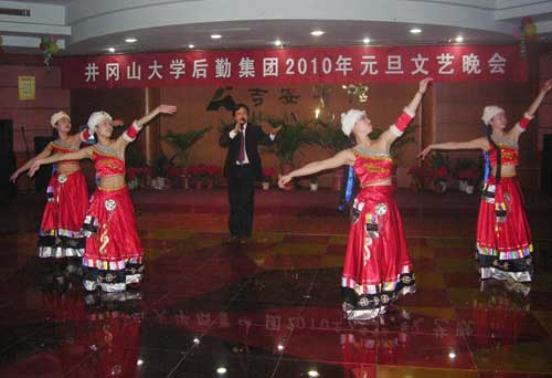 2009年12月31日晚,吉安宾馆5号楼多功能厅内喜气洋洋,欢声笑语,后勤集团在此举办“和谐后勤·我爱我家”2010年元旦文艺晚会。副校长罗学渭、曾建平及有关部门领导出席了晚会,与200余名后勤员工共同迎接新年的到来。...