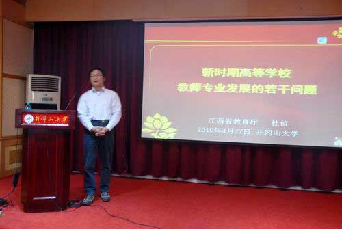 3月27日,江西省教育厅研究员、南昌大学、江西师大兼职硕士生导师杜侦,应邀来我校讲学。他从全球视野,以现代眼光,结合我国由高等教育大国向高等教育强国迈进的历程,结合全国和全省高校的实际,对高校教师专业发展...