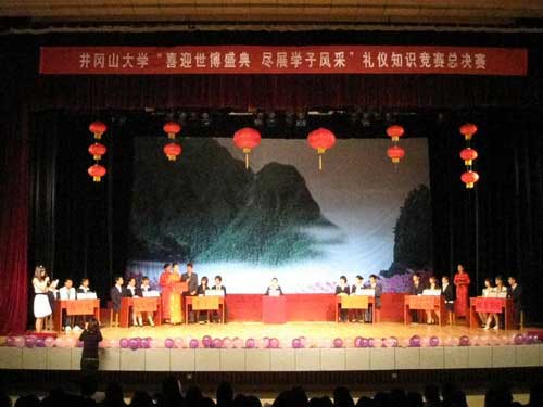喜迎世博盛典,尽展学子风采。4月24日晚,由校团委、学生会主办的礼仪知识总决赛在学生会堂激情上演。从14个代表队中脱颖而出的商学院、人文学院、医学院、护理学院、信息科学与传媒学院和教育学院六支代表队驰骋总决...