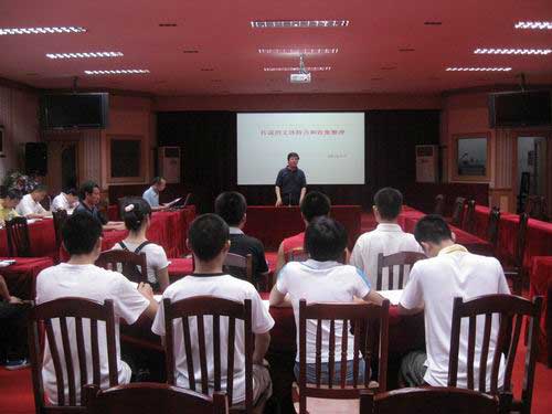 7月7日晚,我校“2010年井冈山及其周边地区的红色传说采写活动”培训会在行政大楼四楼会议室召开。校长张泰城出席会议并讲话,人文学院丁功谊博士以“传说的文体特点和收集整理”为题,为采风团全体师生40余人作了一...