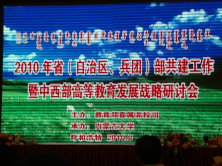 8月13日,2010年省(自治区、兵团)部共建工作暨中西部高等教育发展战略研讨会在内蒙古呼和浩特市召开。来自全国22所省部共建高校和中西部4所“211工程”地方高校(太原理工大学、安徽大学、湖南师范大学、四川农业大...