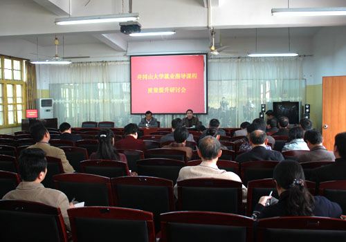 在学校大力开展“提升质量年”活动进程中,招生就业指导处为进一步提升大学生就业指导课程教学质量,于11月4日下午召开了提升大学生就业指导课程质量研讨会,副校长郭名根出席并讲话。会议由招生就业指导处副处长、大...