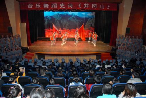 2010级全体新生观看 根据教学计划安排,11月1日、4日晚,音乐舞蹈史诗《井冈山》连续在校举行了两次教学演出,作为校本必修课程《井冈山精神与当代大学生》的重要组成部分,2010级全体新生先后观看。 参演大学生虽然...