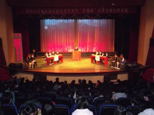 巅峰对决展雄姿,唇枪舌剑论英雄 我校2010年“矛盾杯”大学生辩论赛圆满落下帷幕 11月26日晚,我校“矛盾杯”大学生辩论赛在音乐厅隆重举行,音乐厅内座无虚席。 在季军争夺赛中,正方政法学院立场“应以环保效益为鄱...