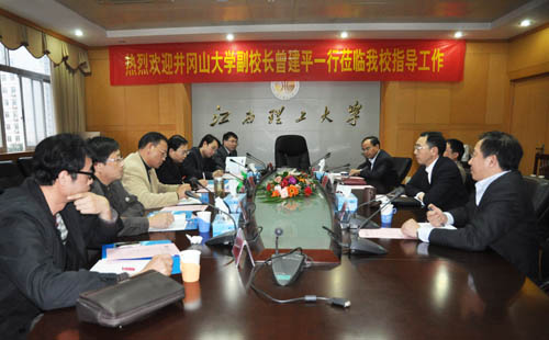 12月1日下午,副校长曾建平带领计划财务处、网络中心部门负责人前往江西理工大学、赣南医学院考察校园一卡通建设情况。中国建设银行吉安市分行副行长叶延安等人陪同。 在江西理工大学,校长叶仁荪会见了曾建平副校长...