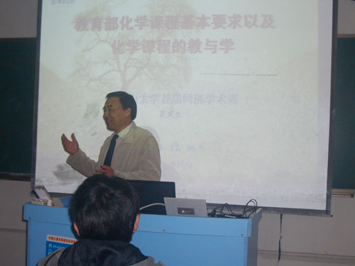 12月6日下午,同济大学化学系博士生导师吴庆生教授在九栋207教室为我校师生作了一场题为《普通化学国家精品课程建设与精要》的学术讲座,讲座由化学化工学院院长方小牛教授主持,化学化工学院师生两百余人听取了学术...