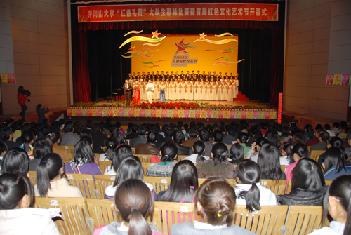 红歌伴成长 薪火传精神 2010年校园红色文化艺术节盛大开幕 “红色礼赞”大学生歌咏比赛同时举行 12月8日,我校隆重举行了2010年校园红色文化艺术节开幕式,党委书记万继抗出席,党委副书记金桂英致辞并宣布开幕。在校...