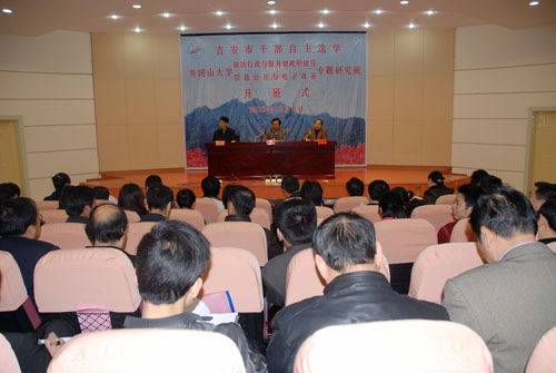 12月6日,吉安市干部自主选学第6期专题研究班“依法行政与服务型政府建设”“信息公开与电子政务”开班式在我校举行。副校长郭名根致辞,办公室副主任肖游章主持,市委组织部干部教育科科长邓志华作动员。吉安市参加...