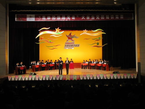 12月19日晚,由校团委、学生会主办的红色文化艺术节“高举团旗跟党走”党团知识竞赛决赛在学生会堂隆重举行。生命科学学院、政法学院、教育学院、外国语学院、工学院、商学院、电子与信息工程学院、化学化工学院8个学...