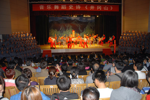 4月20日晚,中国医学科学院、北京协和医学院2011年领导干部“加强党性修养、坚定理想信念、继承优良传统”专题培训班第一期全体47名学员,在校观看了音乐舞蹈史诗《井冈山》,校领导张泰城、王伴青、肖长春,以及150...
