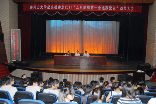 校长张泰城率队,副校长罗学渭作动员 4月26日下午,学校举行赴中央电视台参加“五月的鲜花—永远跟党走”全国大学生大型校园文艺演出动员大会。副校长罗学渭作动员讲话。艺术学院参加演出的53名学生及指导老师参加动...