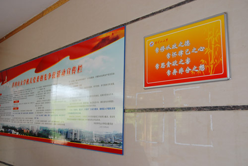 近日,校纪委、办公室按照《井冈山大学廉政文化建设2011—2012年工作规划》部署要求,甄选了一批廉政警句格言,制作成50余块宣传牌,张贴在全校行政办公楼、各主要教学楼和重点领域办公场所。 警句格言紧扣教书育人、...