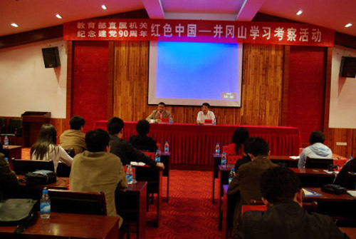 5月13至15日,教育部直属机关纪念建党90周年“红色中国”——井冈山学习考察团一行24人,在教育部直属机关党委副书记兼纪委书记王家勤带领下,参观考察了井冈山革命历史博物馆、茨坪旧居等,在北山烈士陵园、小井红军...
