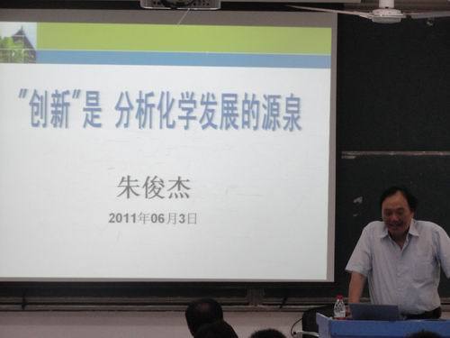6月3日,应化学化工学院邀请,国家杰出青年基金获得者,南京大学化学化工学院博士生导师朱俊杰教授来我校讲学。化学化工学院院长方小牛致欢迎辞,并主持了连续两场学术报告。 3日上午9点,朱教授首先为化学化工学院全...