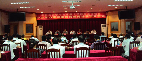 井冈山大学与吉水县人民政府合作项目 吉水县中小学心理健康教育教师培训班在校开班 7月6日下午,井冈山大学与吉水县人民政府合作项目,由教育学院承办的2011年吉水县中小学心理健康教育教师培训班在我校开班。副校长...