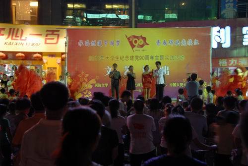 7月5日晚和7月6日晚,由同济大学、井冈山大学、遵义师范学院、延安大学、中国人民大学联合组成的“杜鹃烂漫中国梦、青春辉映党旗红”全国大学生纪念建党90周年主题活动实践团60余名队员,在永新县城广场和井冈山市砻...
