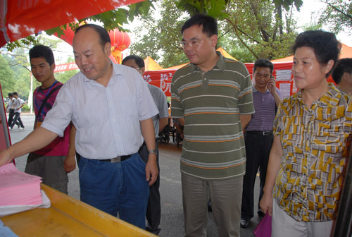 校领导到现场看望 9月1日上午,在校领导万继抗、金桂英、桂国庆、王伴青、肖长春,在有关部门负责人的陪同下,到各学院报名点看望2011级新生及家长,慰问工作人员。 在新生报到点,校领导不时与新生及家长交谈,询问...