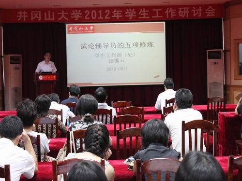 6月26日下午,井冈山大学2012年学生工作研讨会举办。肖长春副校长出席了研讨会,学校学生工作领导小组成员,各学院分管学生工作领导、学生科长、团委书记、辅导员、论文作者,学生工作处全体人员共计90余人参加了会议...