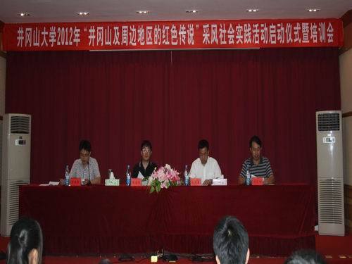 采集红色故事传承红色经典 “井冈山及周边地区的红色传说”采风社会实践启动仪式暨培训会举行 6月28日晚,我校2012年“井冈山及周边地区的红色传说”采风社会实践启动仪式暨培训会举行。校长张泰城、副校长肖长春出席...