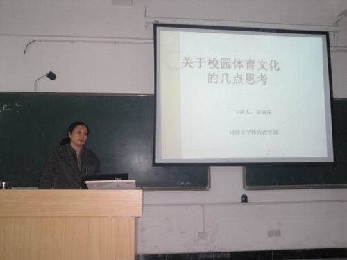 12月5日上午,同济大学体育部周萍教授,汪继兵博士应邀到体育学院座谈了体育精品课程建设经验介绍。体育学院领导和教师30多人参加了座谈会。 周萍教授首先对同济大学体育精品课程的基本情况作了基本介绍,周萍说进行...