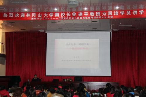 1月27日上午,我校副校长、博士生导师曾建平教授在江西省教育厅师资培训中心为“国培计划(2012)”——江西省农村幼儿园转岗教师培训井冈山大学班的国培学员作了一场题为《幼儿为本师德为先——漫说幼教师德》的精彩...