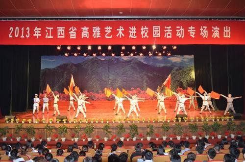 6月1日晚,由江西省教育厅主办、我校承办的2013年江西省高雅艺术进校园活动音乐舞蹈史诗《井冈山》专场演出在南昌大学举行。南昌大学党委副书记徐求真,我校校长张泰城出席观看并先后致辞。江西省教育厅艺术教育委员...