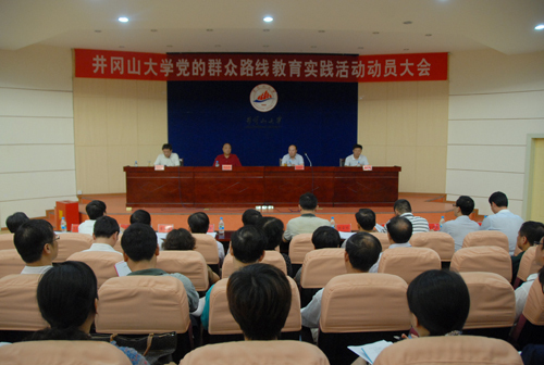 弘扬井冈山精神 心系群众促发展 我校党的群众路线教育实践活动动员大会召开 万继抗、毛学东讲话 张泰城主持 7月9日下午,我校召开党的群众路线教育实践活动动员大会,校党委书记万继抗、省委第14督导组组长毛学东...