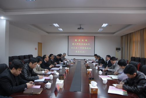 3月19日,遵义师范学院校长王大忠率该校有关部门负责人一行来校,就师资队伍建设和本科教学工作,专业学科建设与科研工作,行政与人事管理工作等进行交流。校党委书记万继抗出席座谈会并讲话,副校长肖长春介绍了学校...