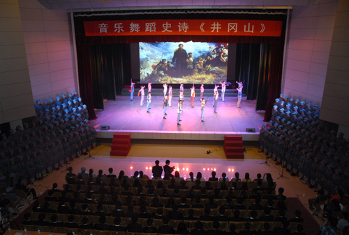 4月28日晚,音乐舞蹈史诗《井冈山》第150场教学演出在校隆重举行。中共中央党史研究室宣传教育局局长陈夕,教育部社会科学司司长张东刚,江西省委教育工委副书记史蓉蓉,中国井冈山干部学院副院长柯华,教育部高等学...